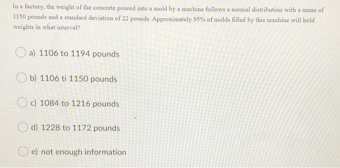 Solved In A Factory The Weight Of The Concrete Poured Into Chegg Com